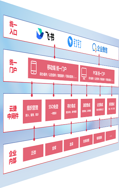 对协作平台提供支持服务,,支持企业应用与协作平台对接,,,,包含组织同步、、消息集成、、、待办集成等。。支持目前主流的协作平台:钉钉、、、企微和飞书。。。